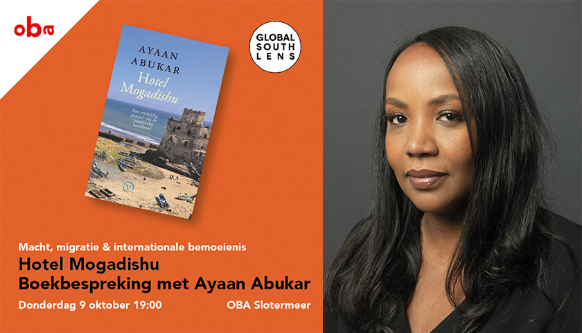 OBA Amsterdam en Global South Lens organiseren een bijzondere boekbespreking met journalist en schrijver Ayaan Abukar. Aan de hand van haar boek Hotel Mogadishu verdiepen we ons in de complexe dynamiek van macht, migratie, wederopbouw en internationale bemoeienis in Somalië.